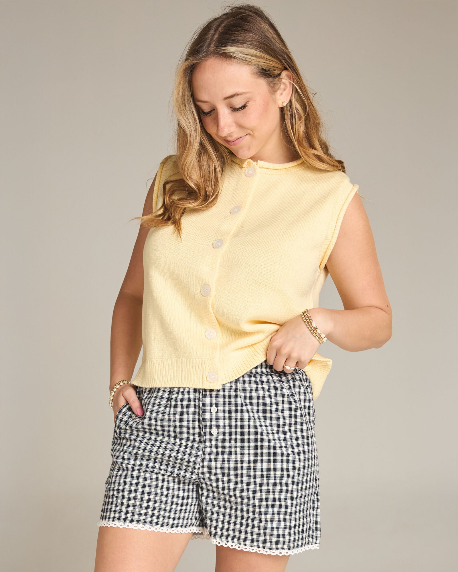 This button up vest is a versatile piece that can be dressed up or down. The button-up front adds a touch of sophistication, while the cotton fabric provides a comfortable and flattering fit.
