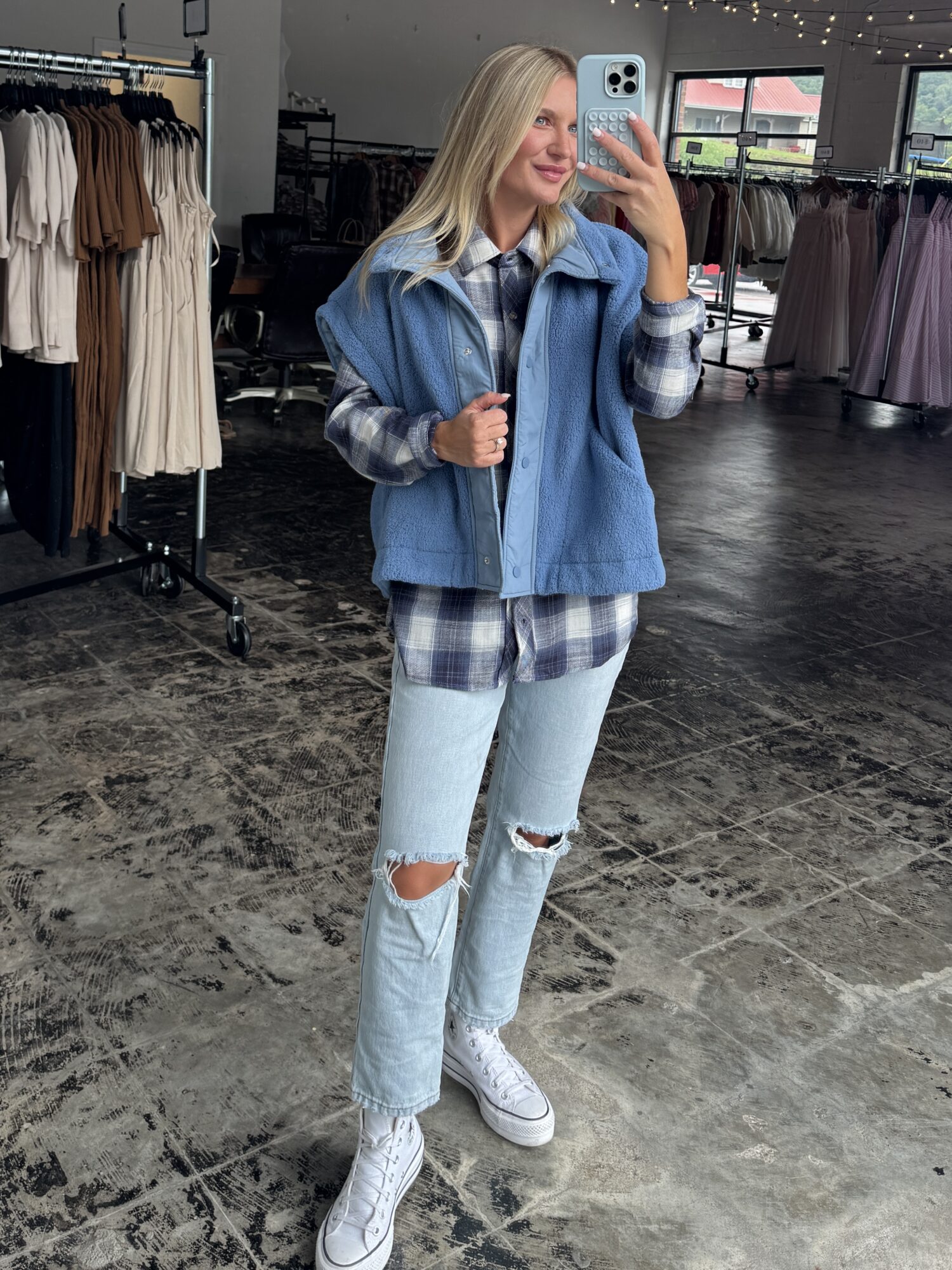 Meet your new fall favorite — the flannel that’s as cute as it is cozy. With its soft, laid-back feel and timeless plaid pattern, it’s the perfect layer for pumpkin patch strolls, apple picking, or just sipping cider on the porch. Easy to throw over tees, sweaters, or dresses, this flannel makes every fall outing a little more picture-perfect.