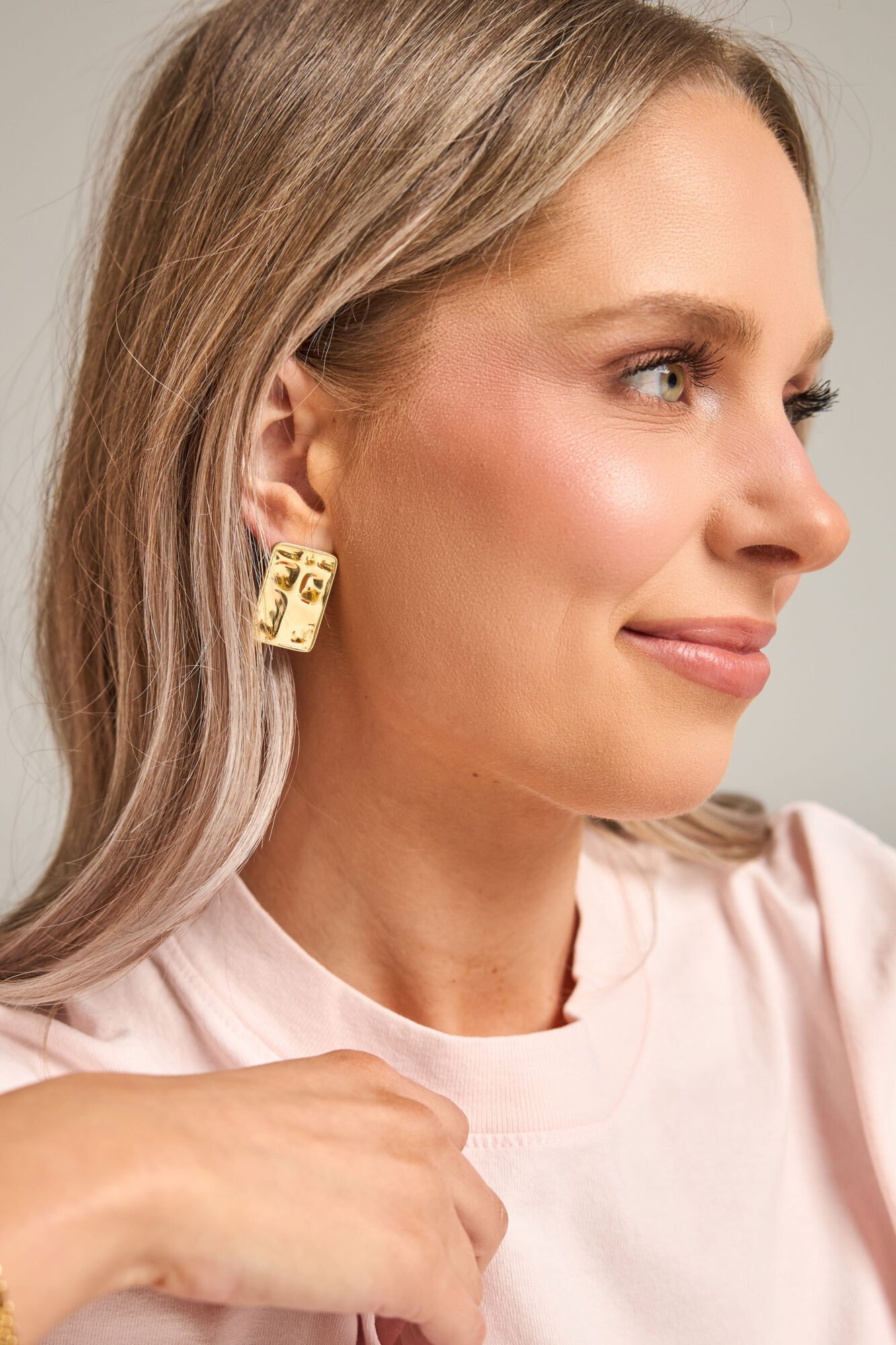 Go geometric with these statement rectangular studs. Modern and sleek, they’re perfect for adding a touch of edge to your look. Made from a strong layer of 18K gold over stainless steel, waterproof and designed for everyday wear. These beauties are lightweight so you can live in them!
