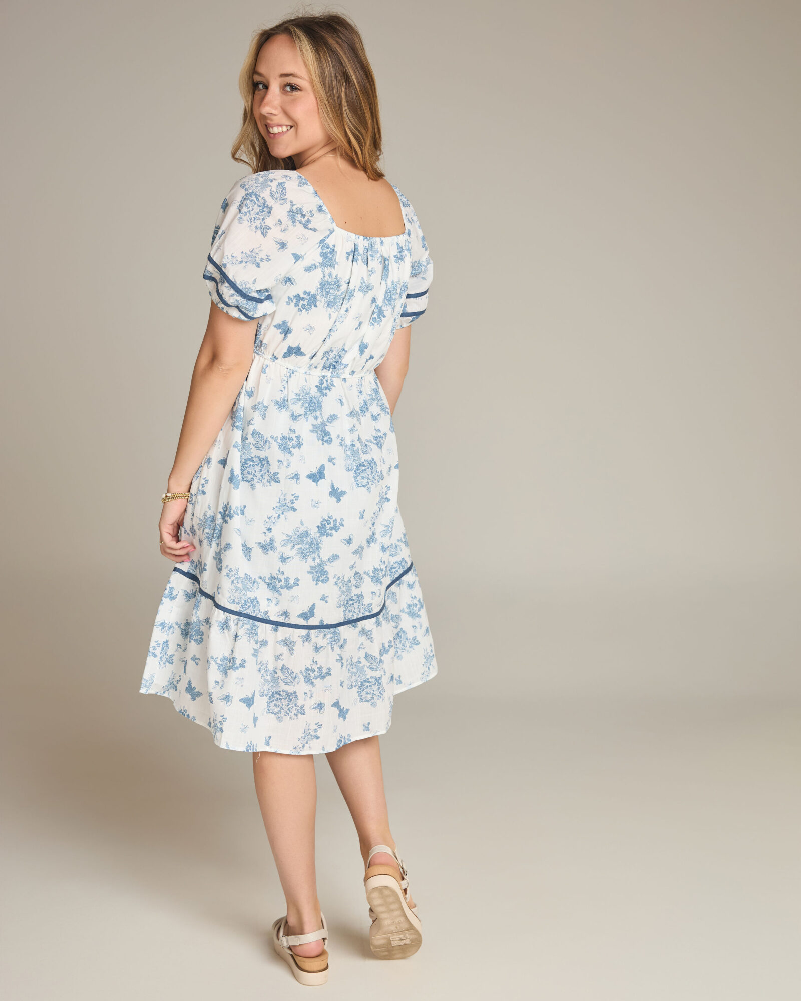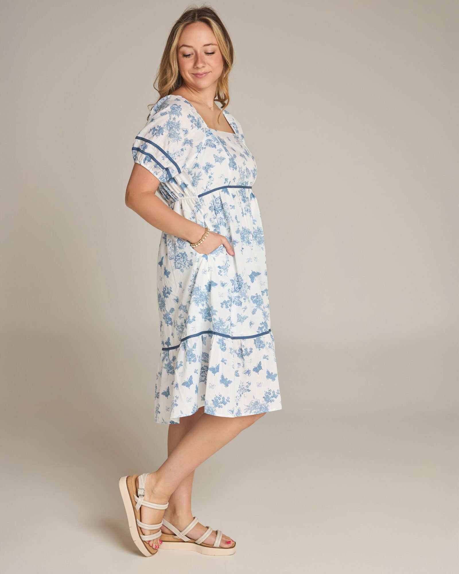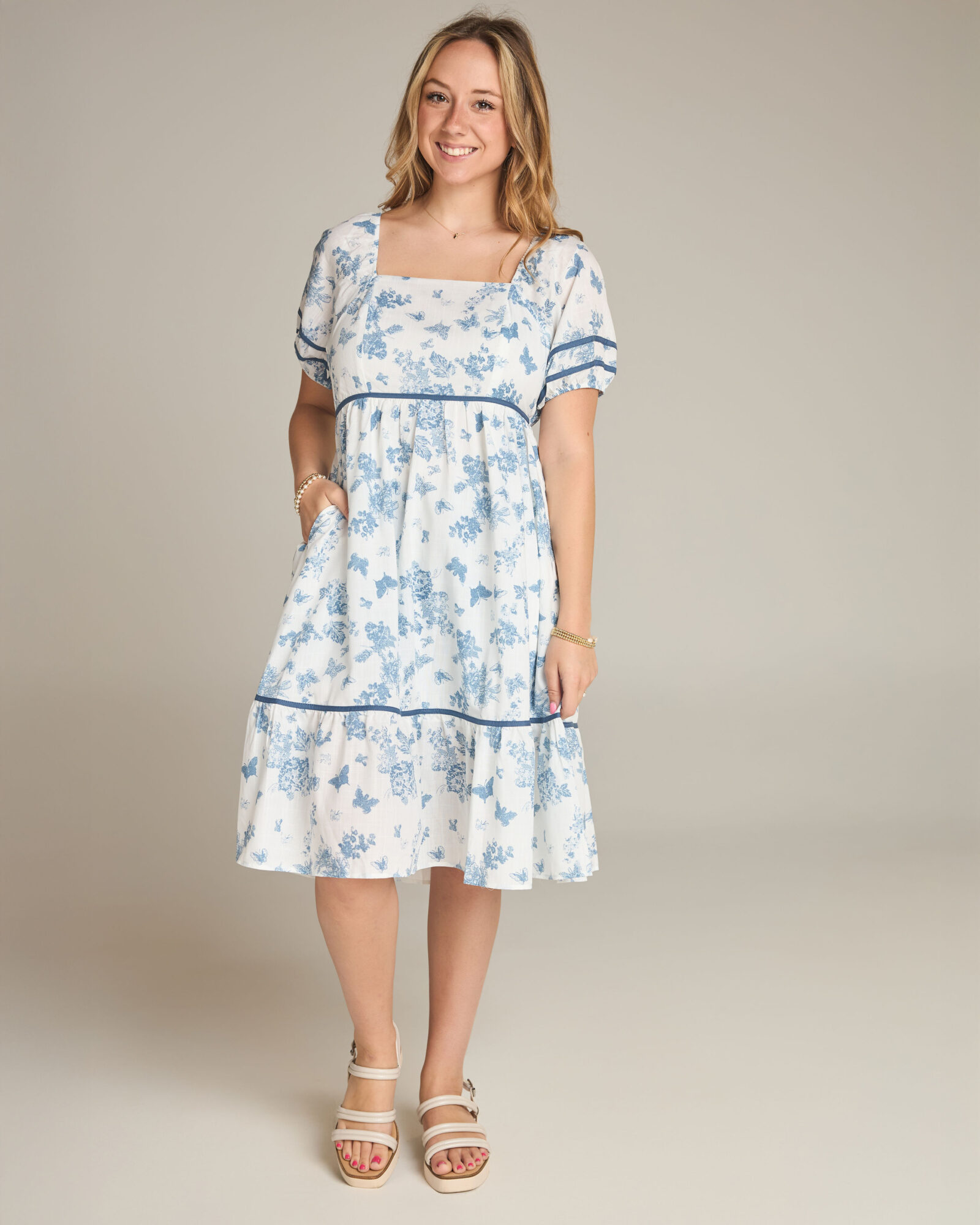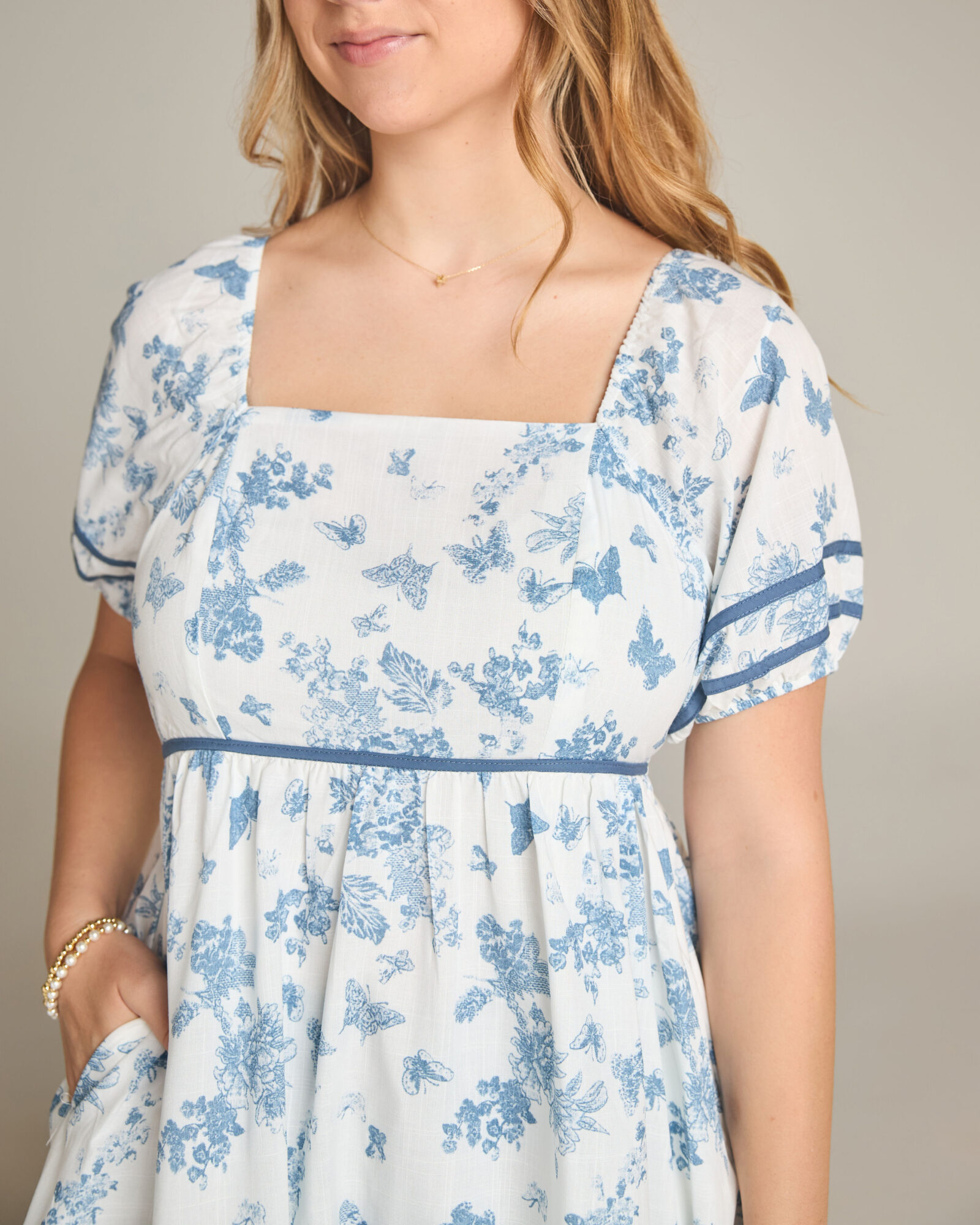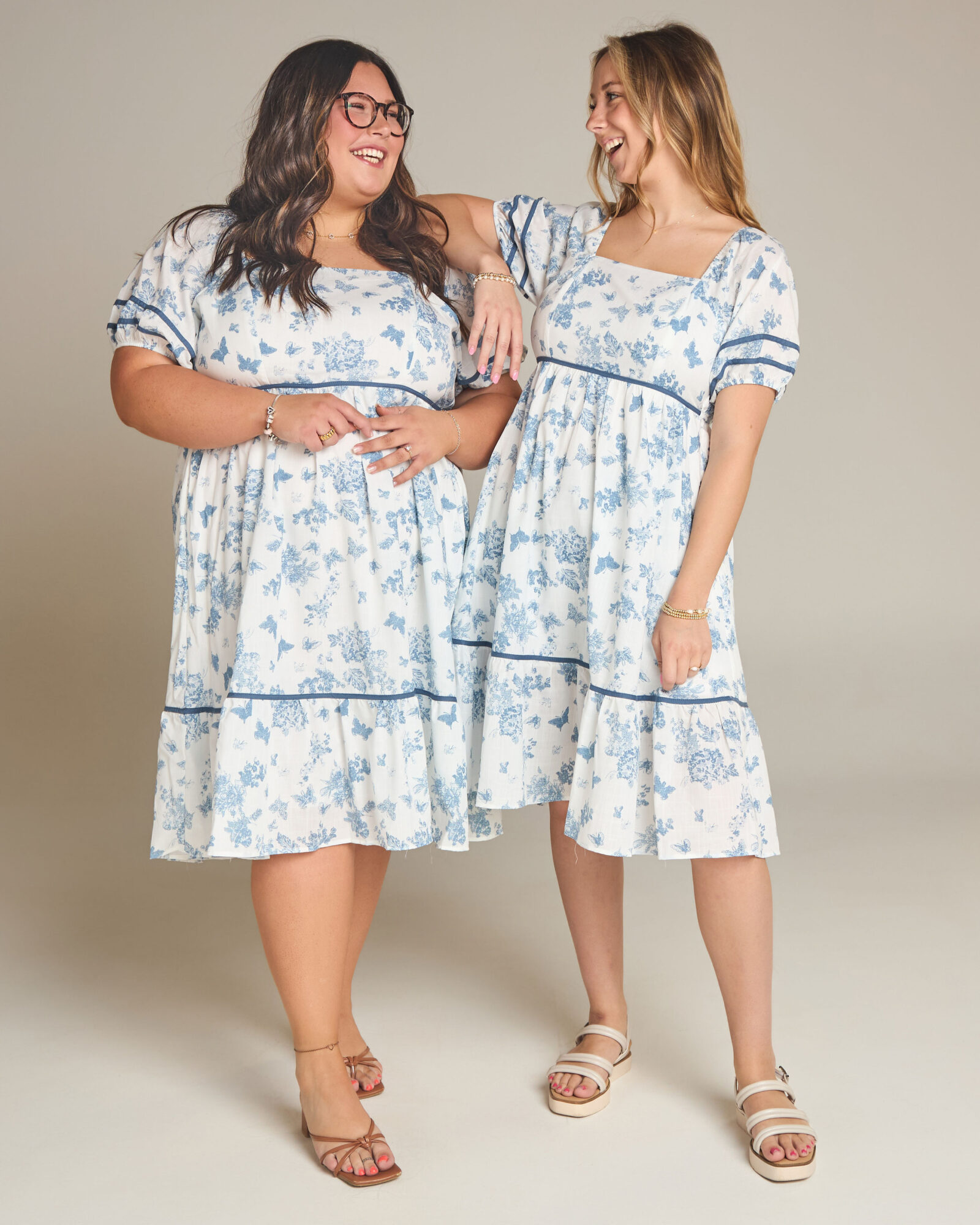 This blue floral tiered mini dress is a playful yet romantic piece that captures carefree elegance. Its soft blue fabric is adorned with a charming floral print, adding a fresh, feminine touch to the silhouette. The tiered skirt creates gentle movement with every step, giving the dress a flirty, layered effect that feels light and effortless.