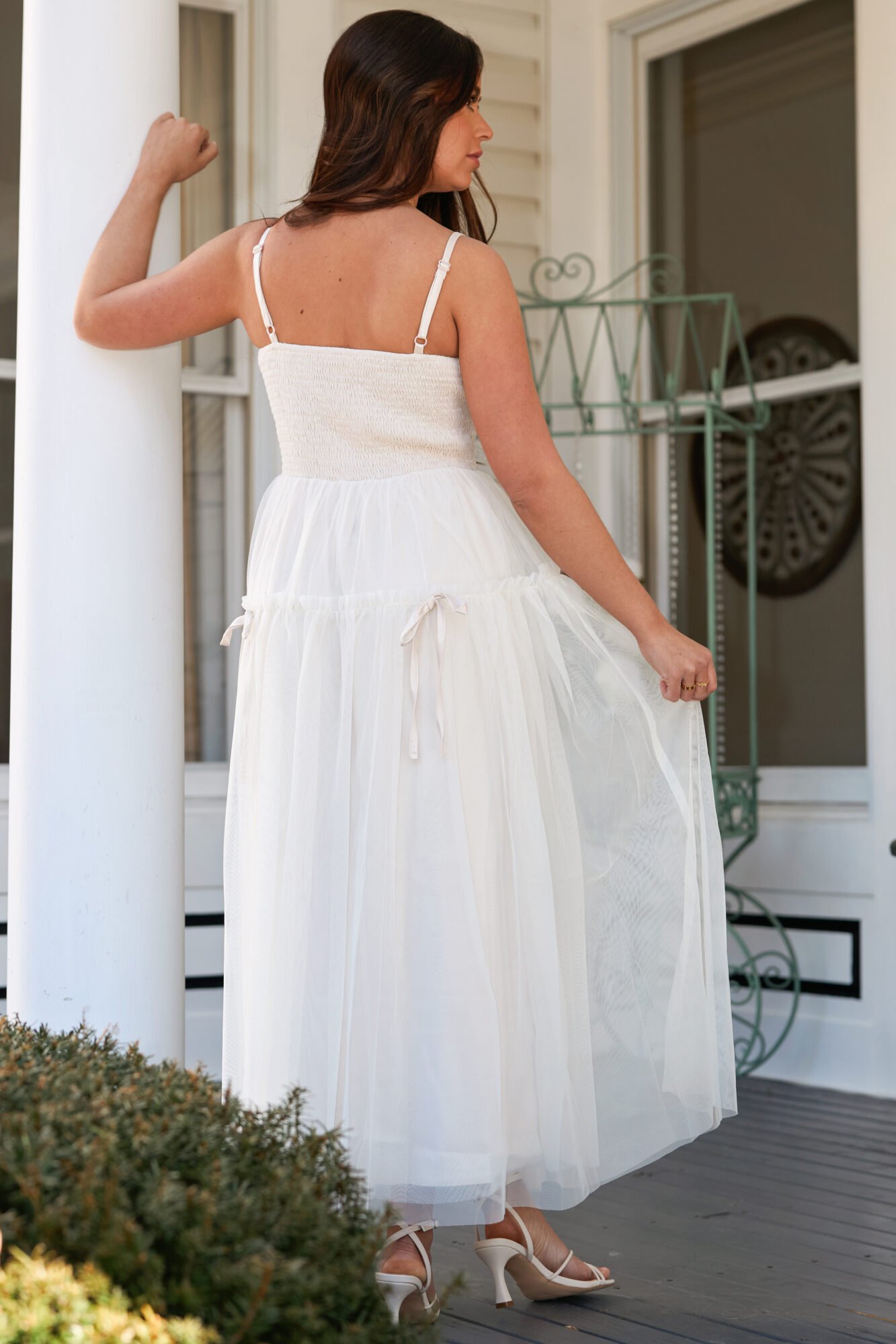 The Chandler | Ivory Mesh Bow Maxi Dress