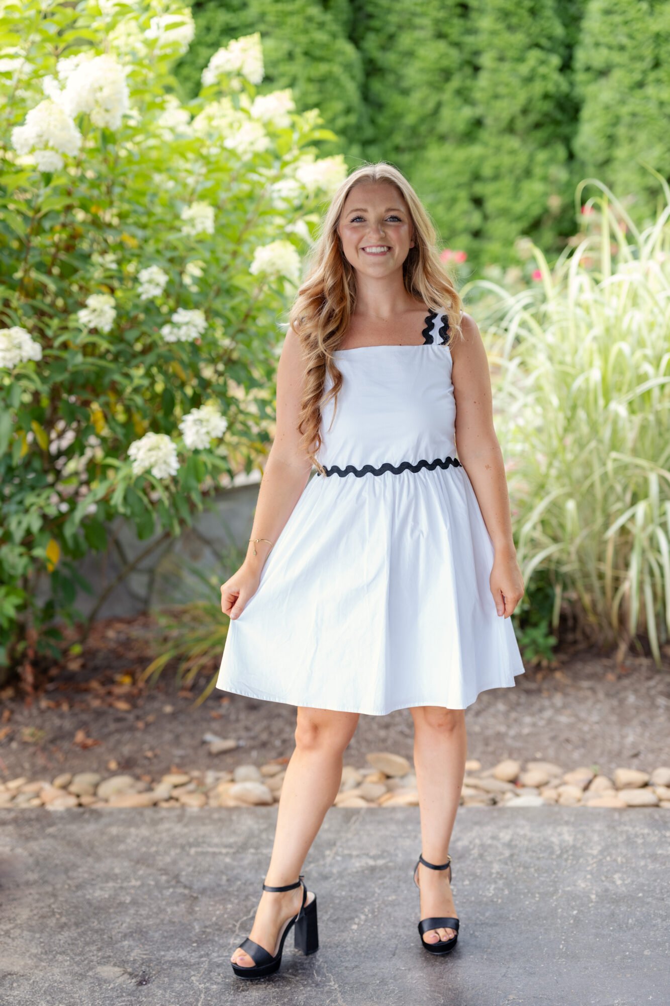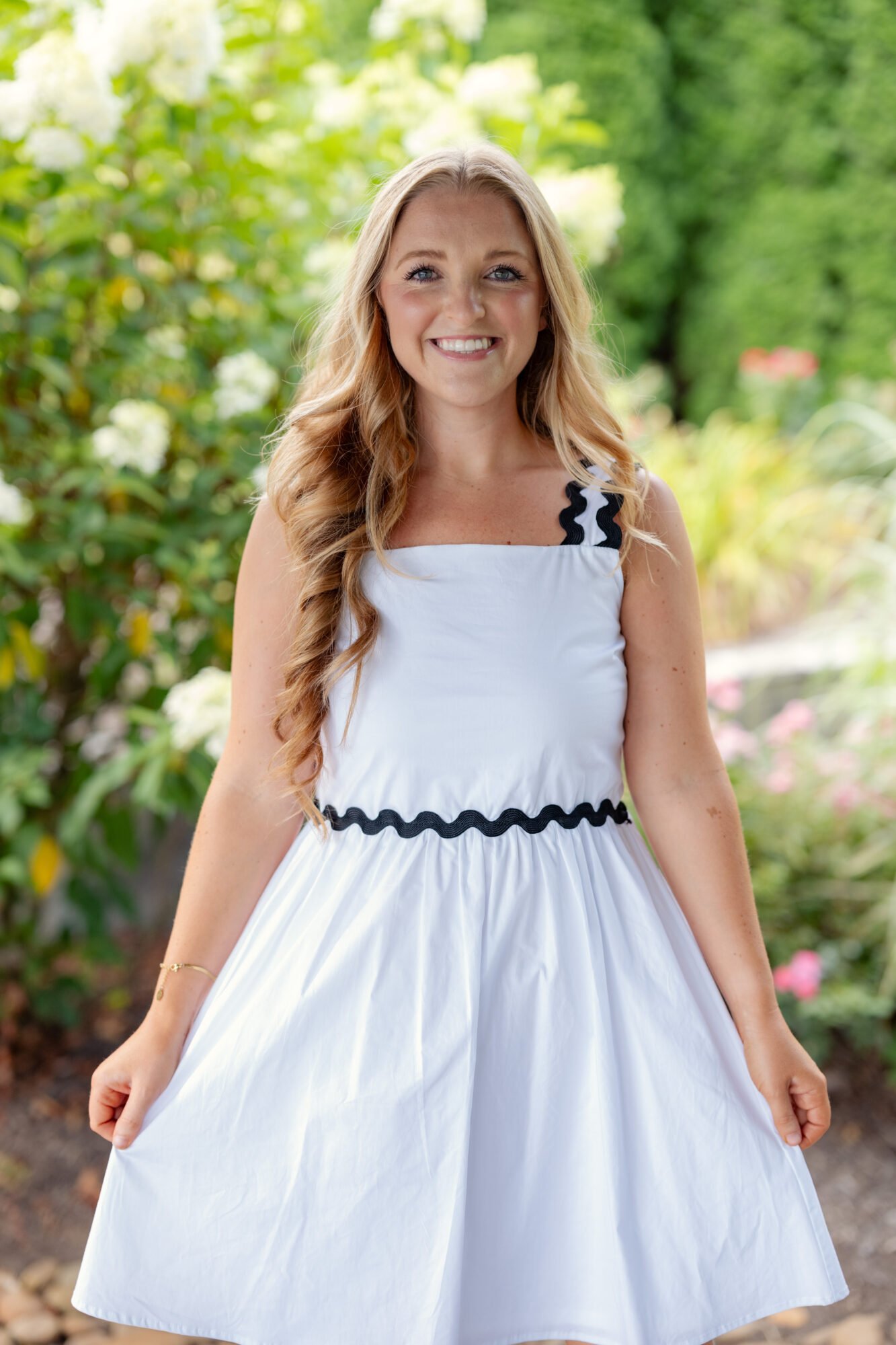 Discover effortless style with our Gemma Ric Rac Dress. This stunning dress features a square neckline and delicate red ric rac trim detailing. Perfect for any occasion, it’s a must-have addition to your wardrobe!