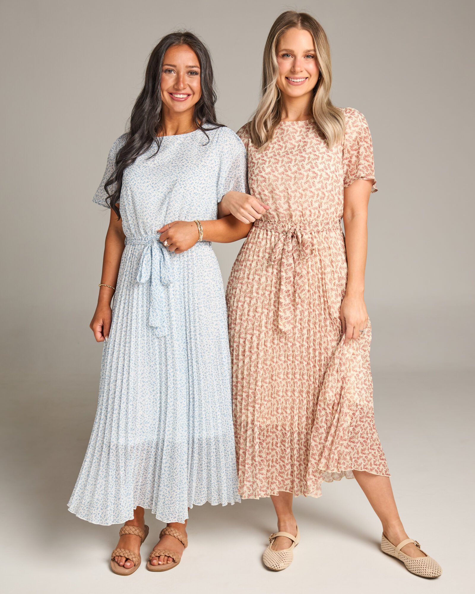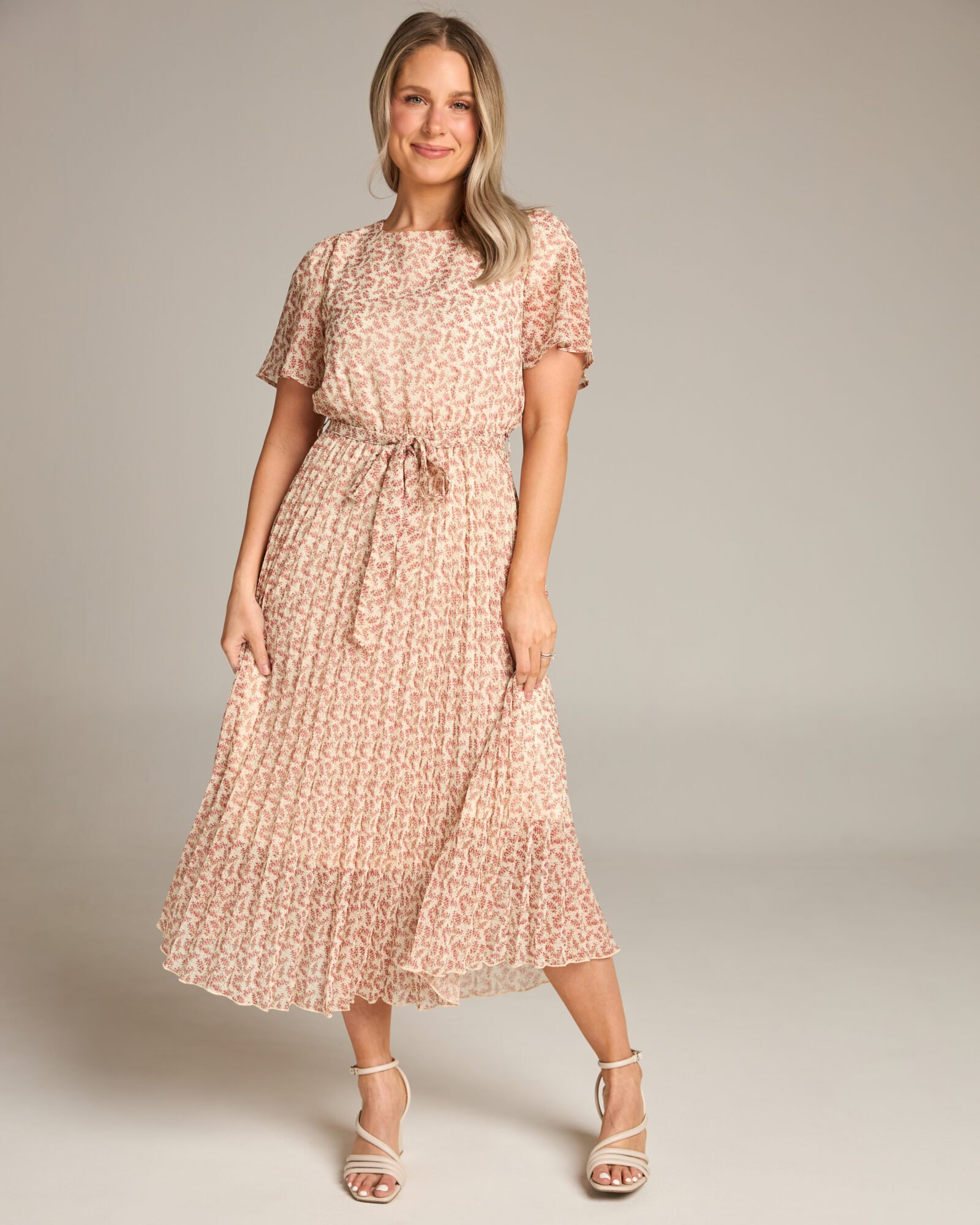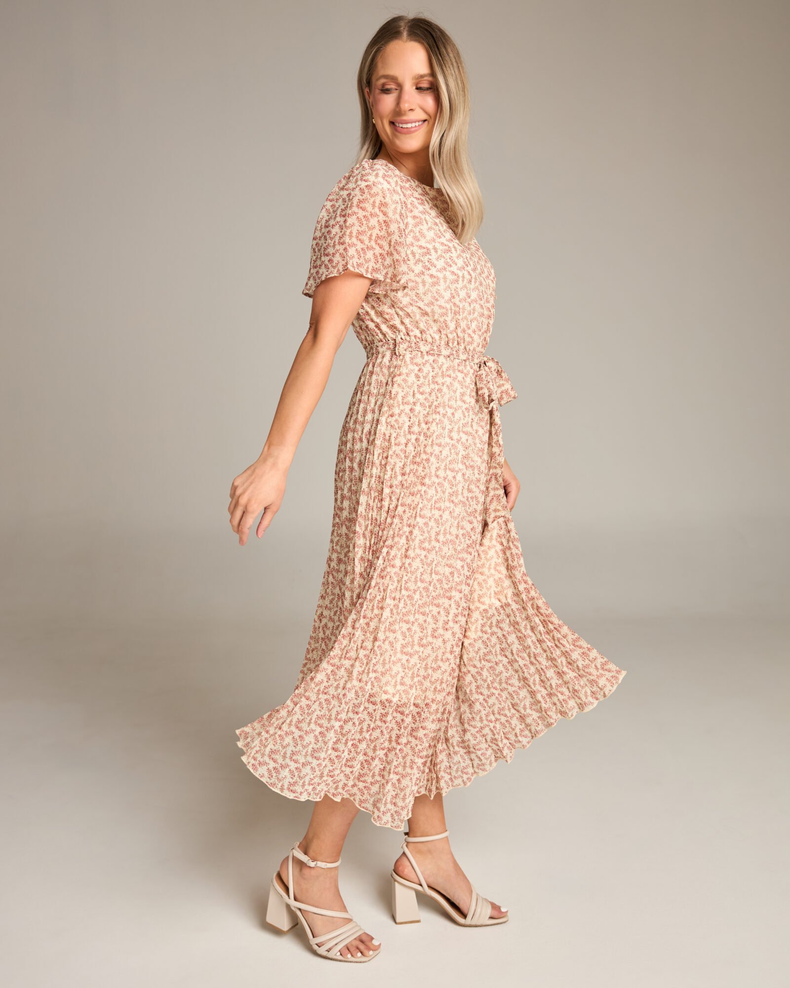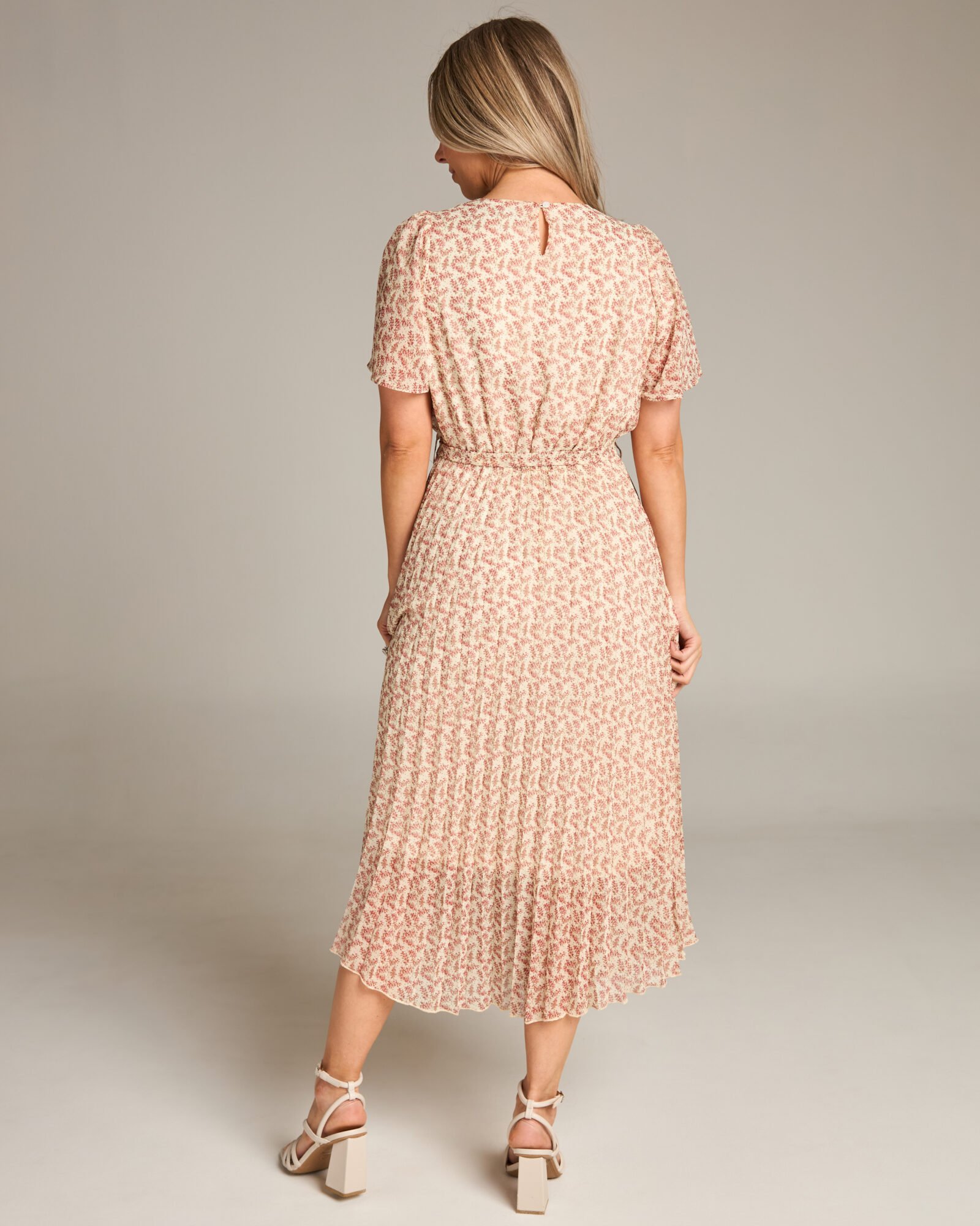 The Makenna | Ivory and Pink Floral Pleated Dress