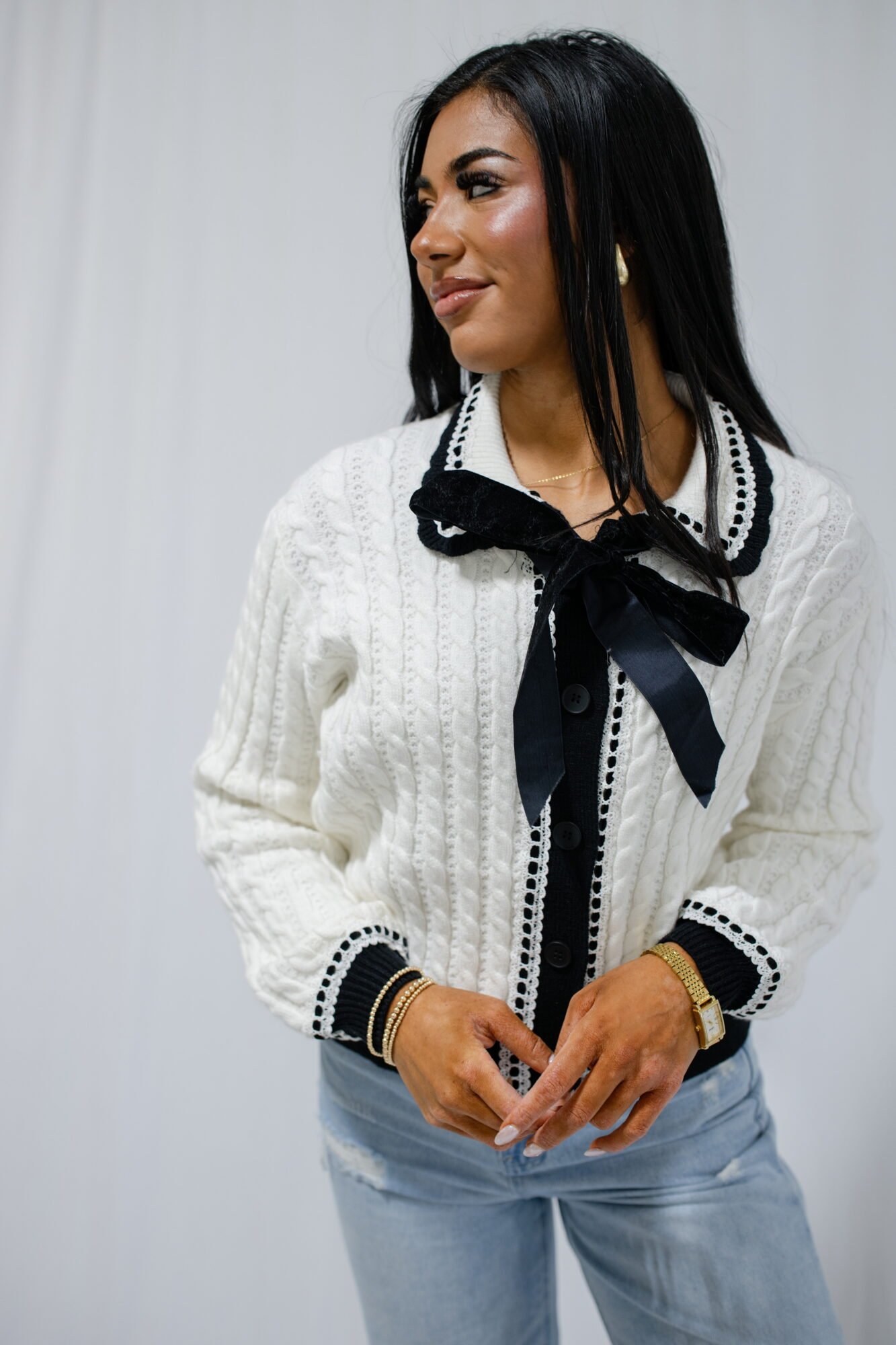 The Tinsleigh Bow Cardigan | Cream